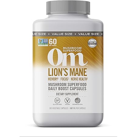 Amazon Com Om Mushroom Superfood Lion S Mane Mushroom Capsules Superfood Supplement 180 Count 60 Days Fruit Body And Mycelium Nootropic For Memory Support Focus Clarity Nerve Health Creativity And Mood Health Household